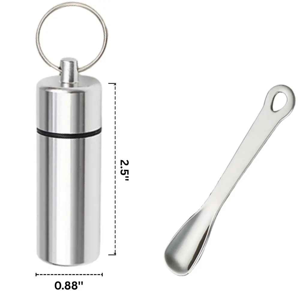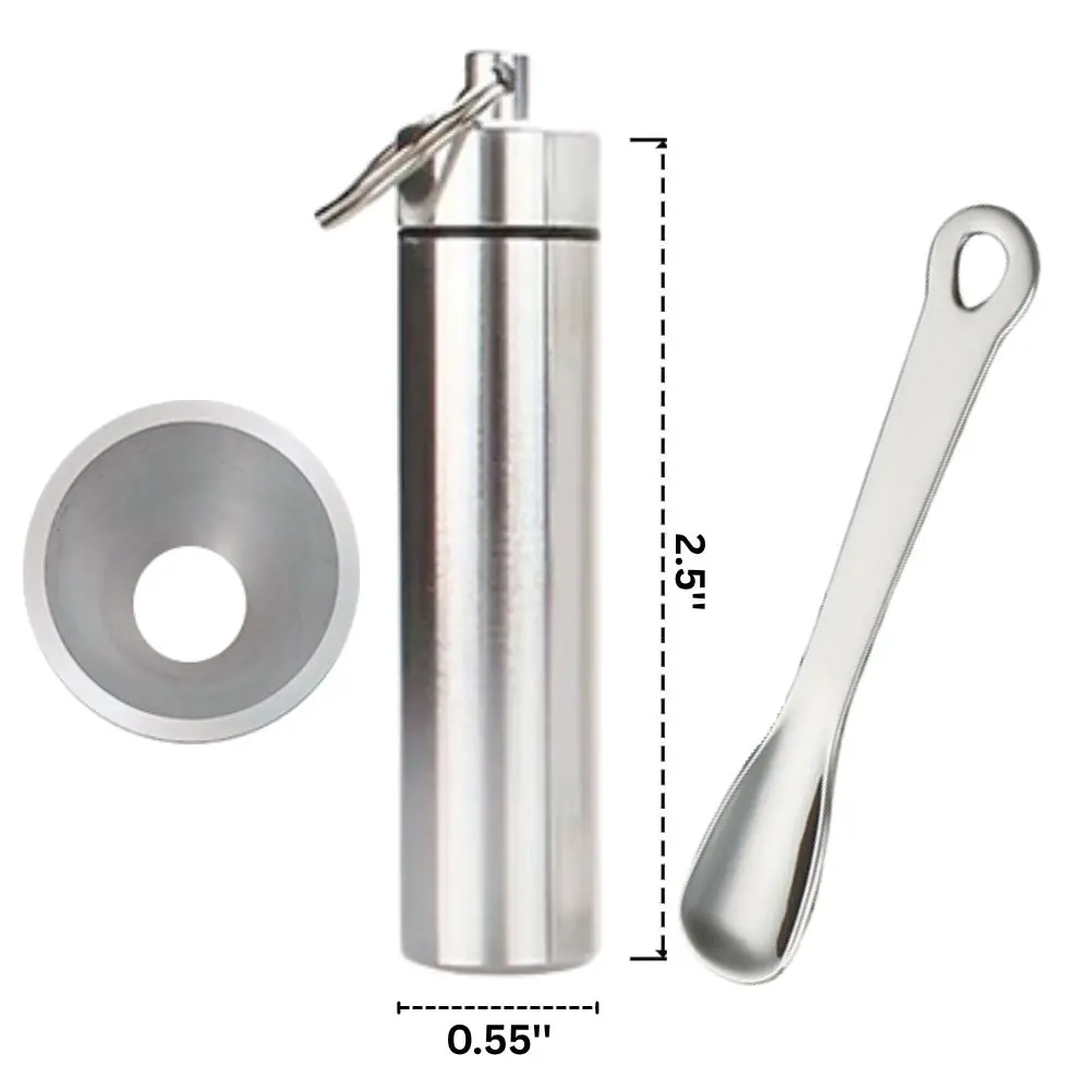 Convenient for grinding up certain elements one may possess and storing into the vial that so handedly screws into the bottom of this thing..